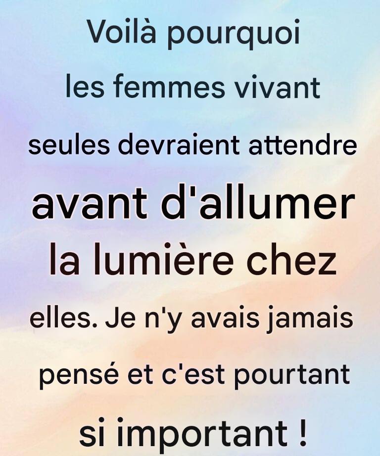 C’est pourquoi les femmes vivant seules devraient attendre avant d’allumer la lumière à la maison….