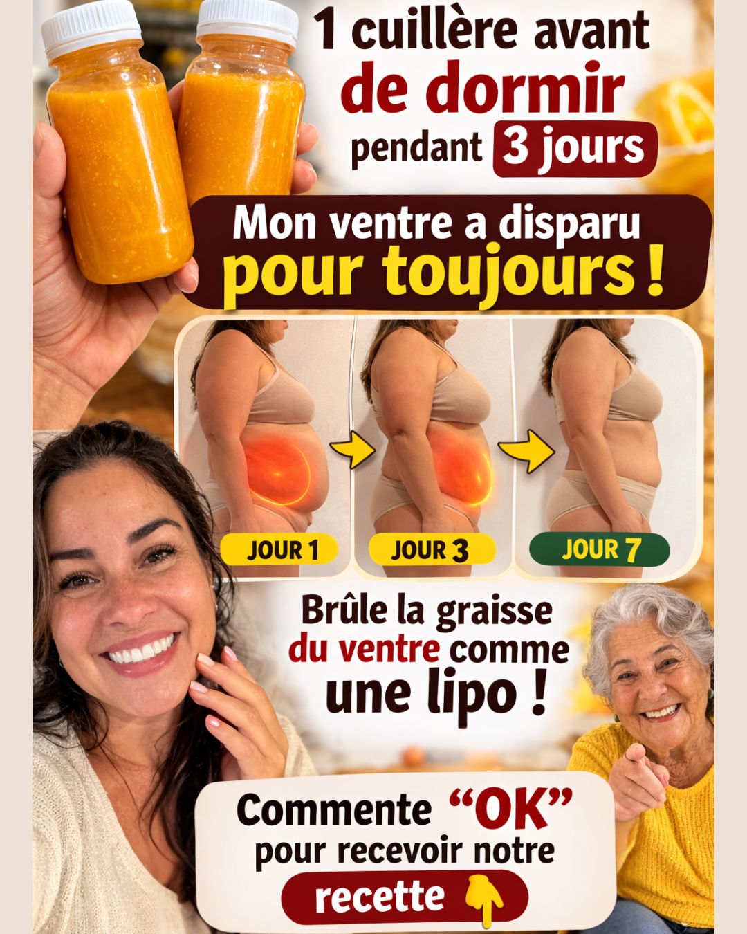 1 cuillère chaque soir pendant 3 jours : la boisson maison simple pour avoir un ventre plat naturellement