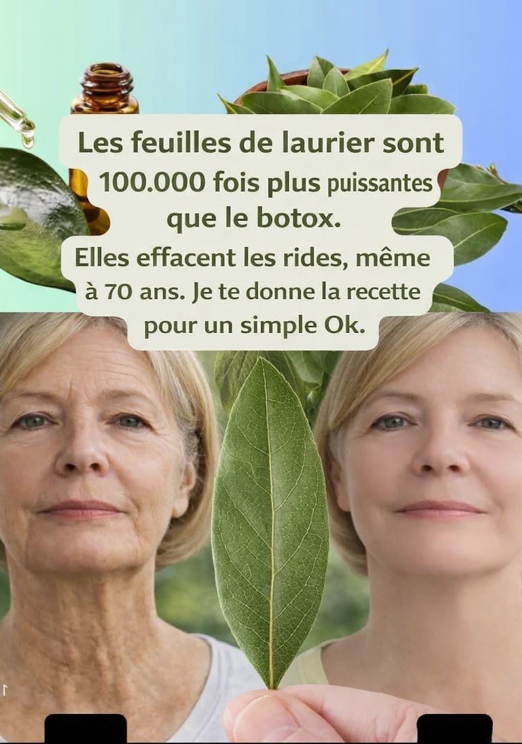 Alors que le Botox agit en paralysant les muscles du visage, le laurier nourrit la peau en profondeur, détend les tensions et combat les causes du vieillissement, comme le stress oxydatif.
